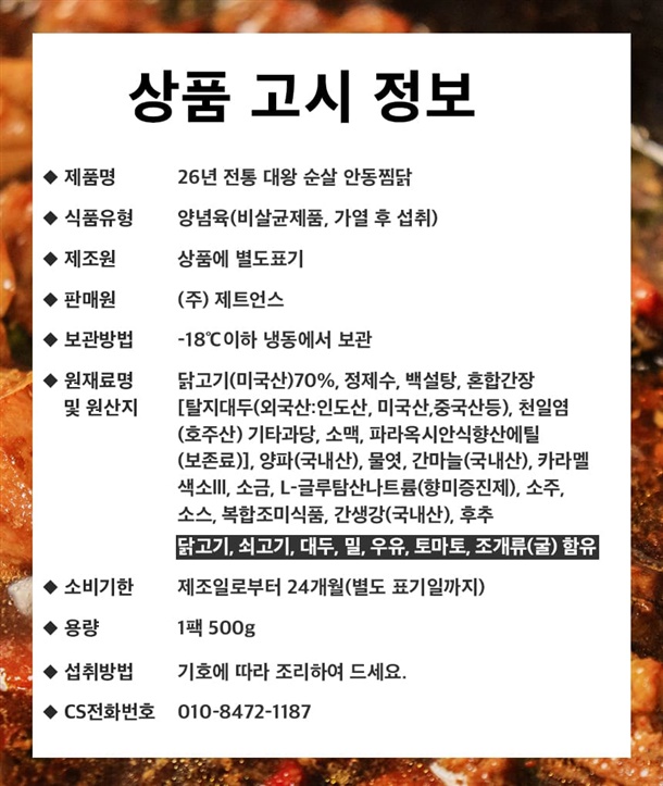 100% 닭다리살로만! 특급양념으로 만든 안동찜닭!!