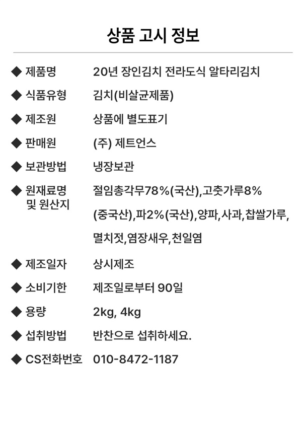 | 제조원&판매원 | 농업회사법인 주식회사 새움푸드 /경상북도 예천군 예천읍 청복리길 35-6 |