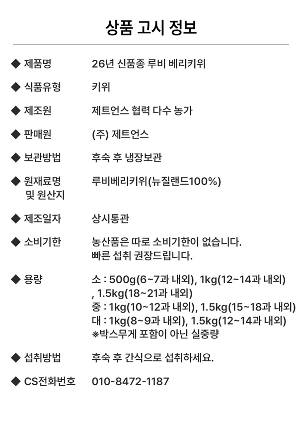 | 제조원 | 제트언스 협력업체 (다수농가) |