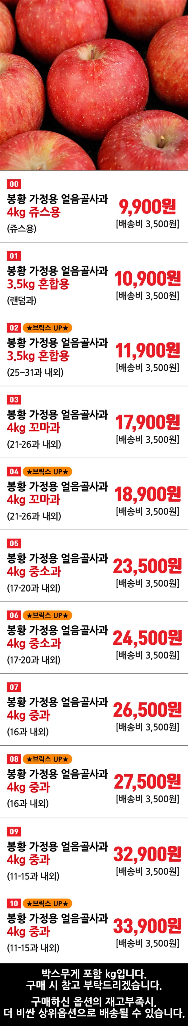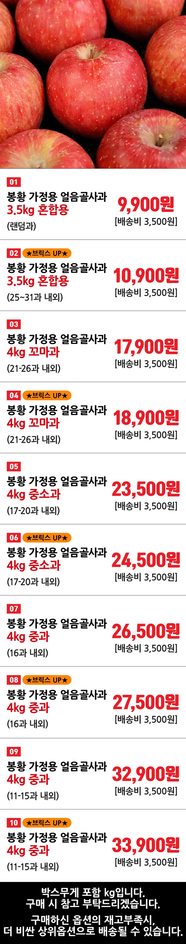 옵션명 참고 ( *박스무게 포함 )