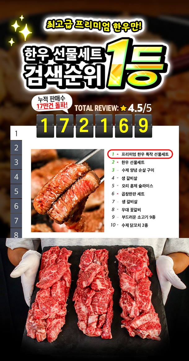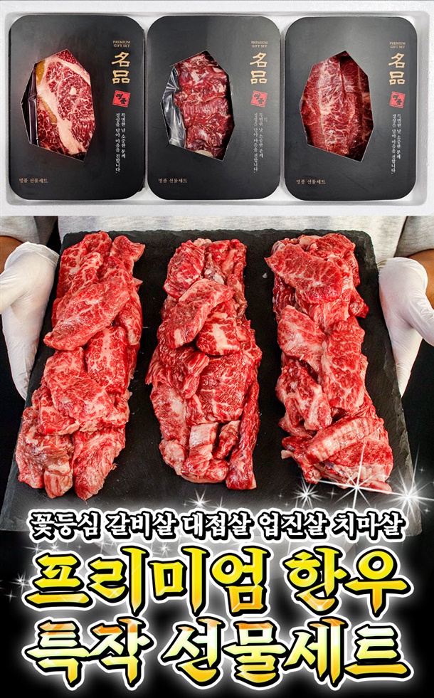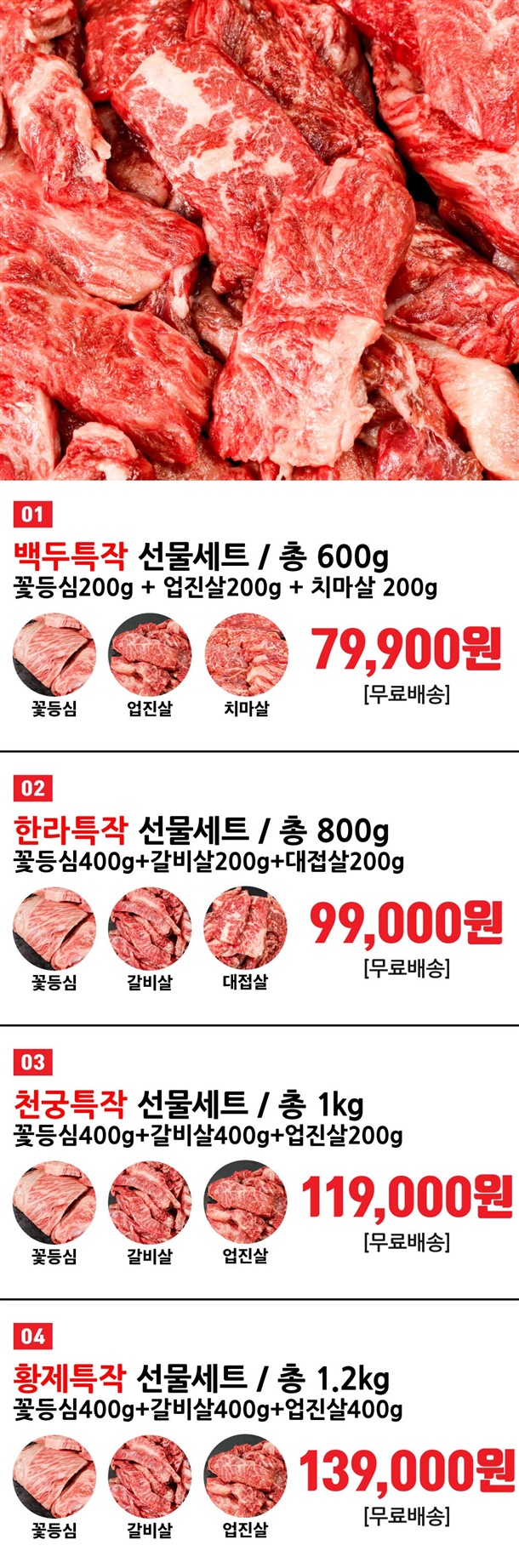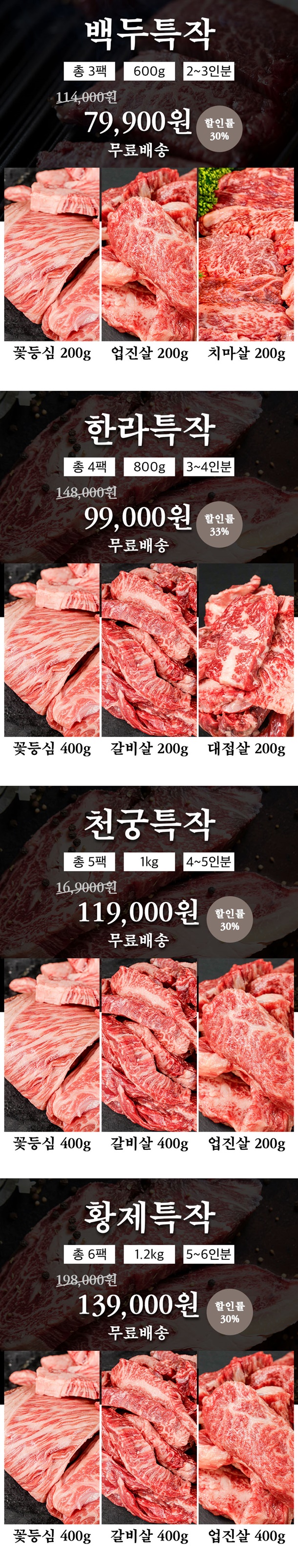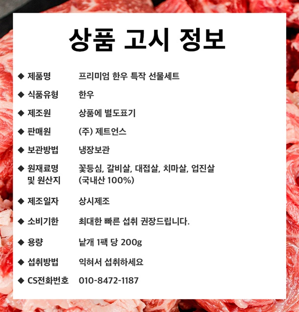 1팩 200g (꽃등심, 갈비살, 대접살, 업진살, 치마살)