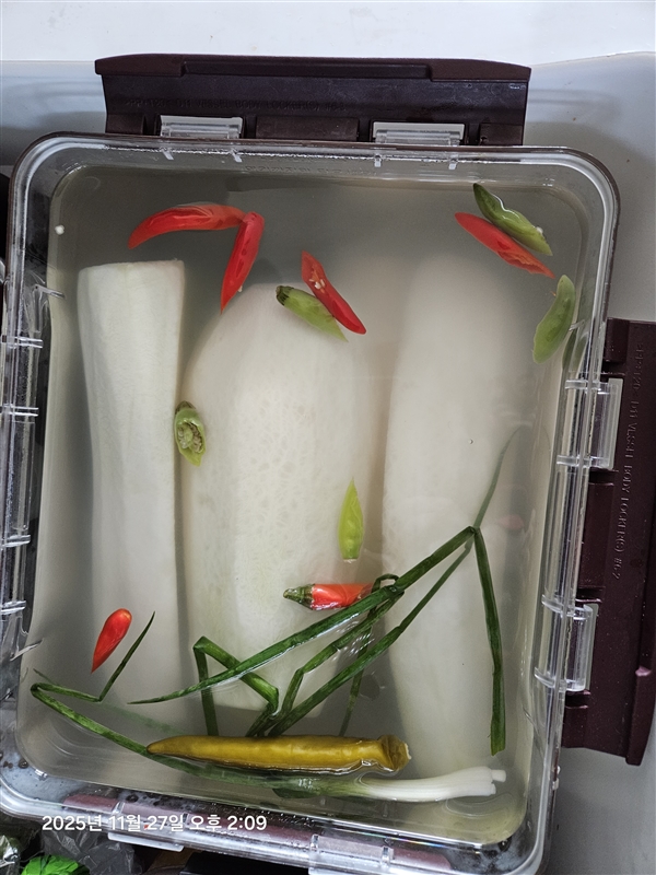 마늘, 찹쌀풀을 갈아서 즙으로 넣었답니다~