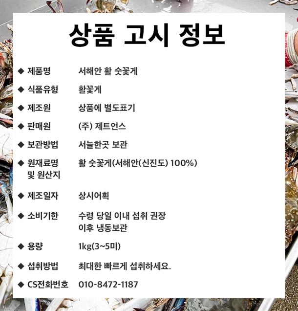 (※꽃게 살은 대부분 몸통에 90% 이상 차지합니다.)
