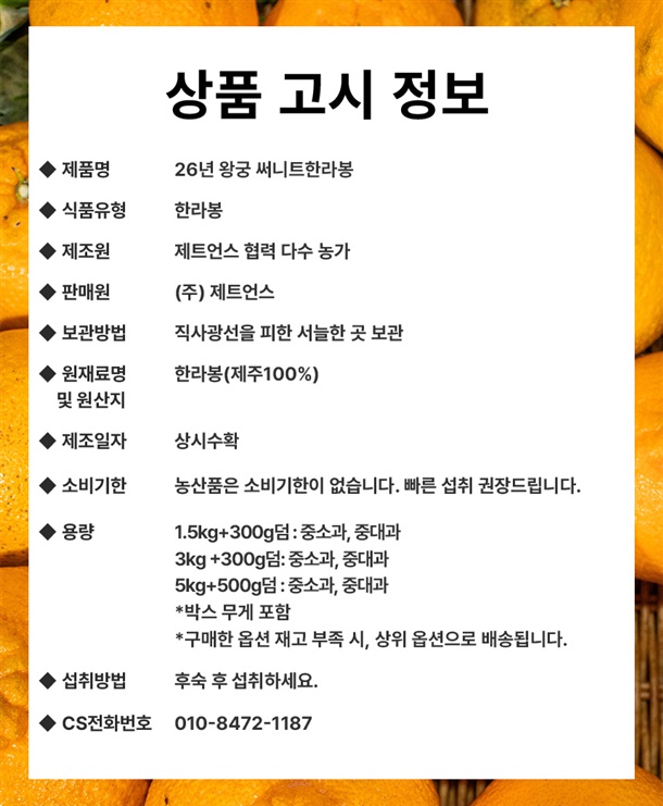 | 제조원 | 제트언스 협력업체 (다수농가) |