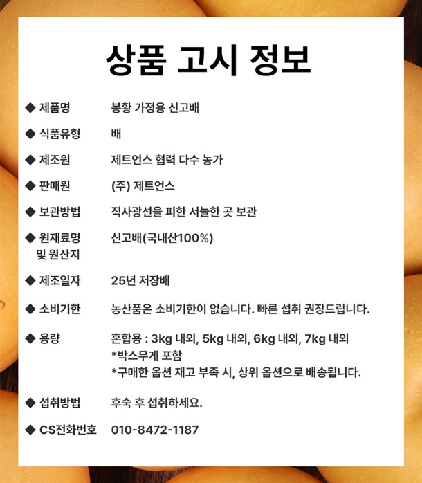 | 제조원 | 제트언스 협력업체 (다수농가) |