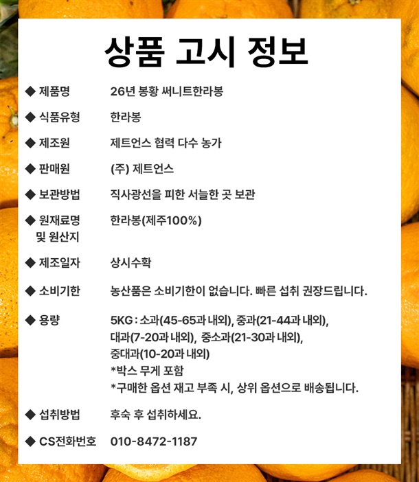 | 제조원 | 제트언스 협력업체 (다수농가) |