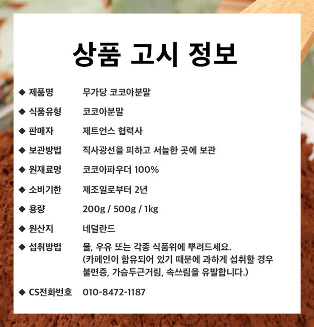 맛있는데 건강에도 너무 좋은 무가당 코코아분말