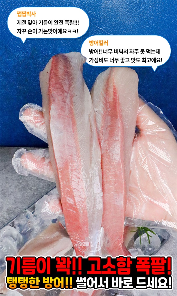 방어의 경우 방어 가마살 부위에 제거되지 않은 뼈가 있으니 제거 후 섭취해주세요.