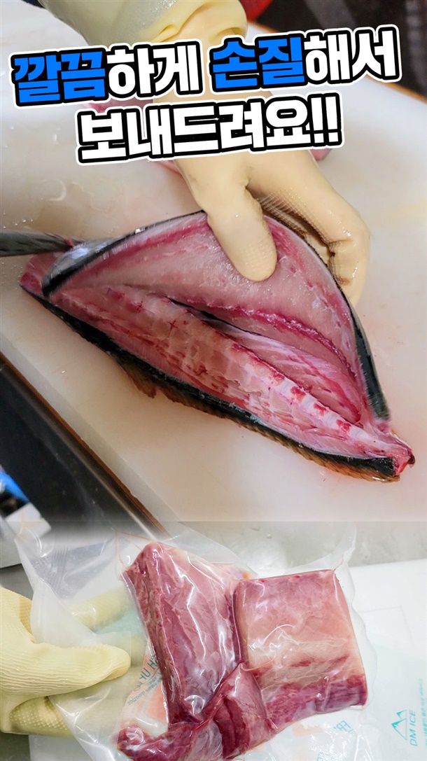 특히 방어 혈압육은 손질 후 2-3시간이 지나면 갈변 현상을 일어날 수 있으나, 이는 상한 것이 아닌 자연스러운 현상이므로 키친타올로 가볍게 닦아서 드세요.