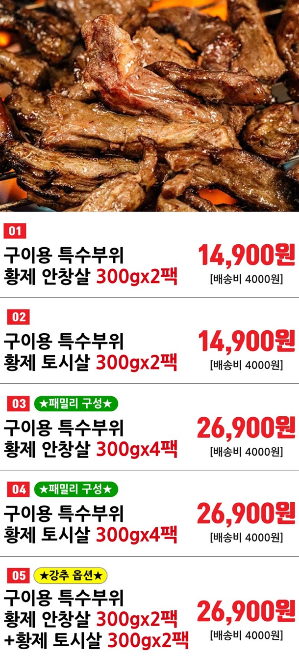 · 배송비 : 4,000원(5개 마다 기본배송비 반복 부과)