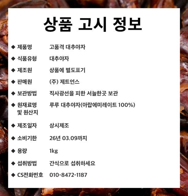 | 제조원 | KHATT DATES FACTORY / 아랍에미리트 |