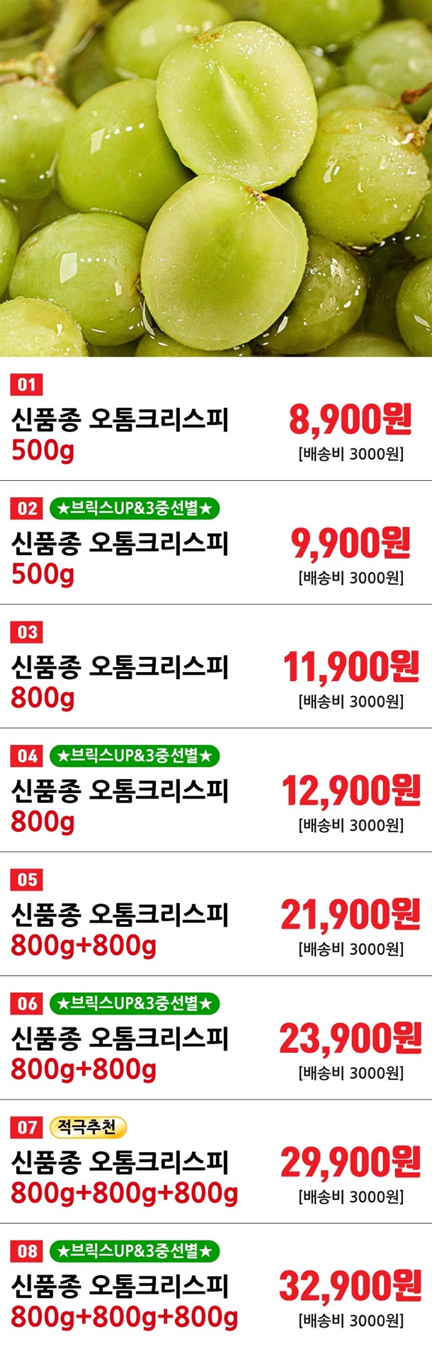 · 배송비 : 3,000원(1개 마다 기본배송비 반복 부과)
