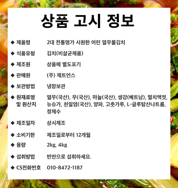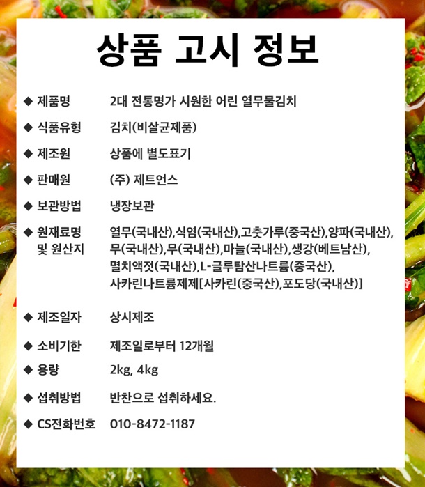 | 제조원 | 농업회사법인주식회사신선촌 / 충청북도 충주시 대소원면 금곡만정길 184-9 (가동) |